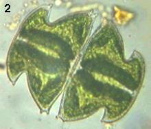 Left: Roya obtusa (Bréb) W.&.G.S.West 1896 Above: Micrasterias oscitans Ralfs 1848 Two desmids species from Thursley Common, Surrey, UK collected by the author. |
