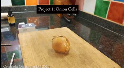 This video helps you understand how to obtain the skin (membrane) of an onion, stain it, and mount it on a slide ready to view. If you are young, it might be best to get a parent to cut the onion for you. |