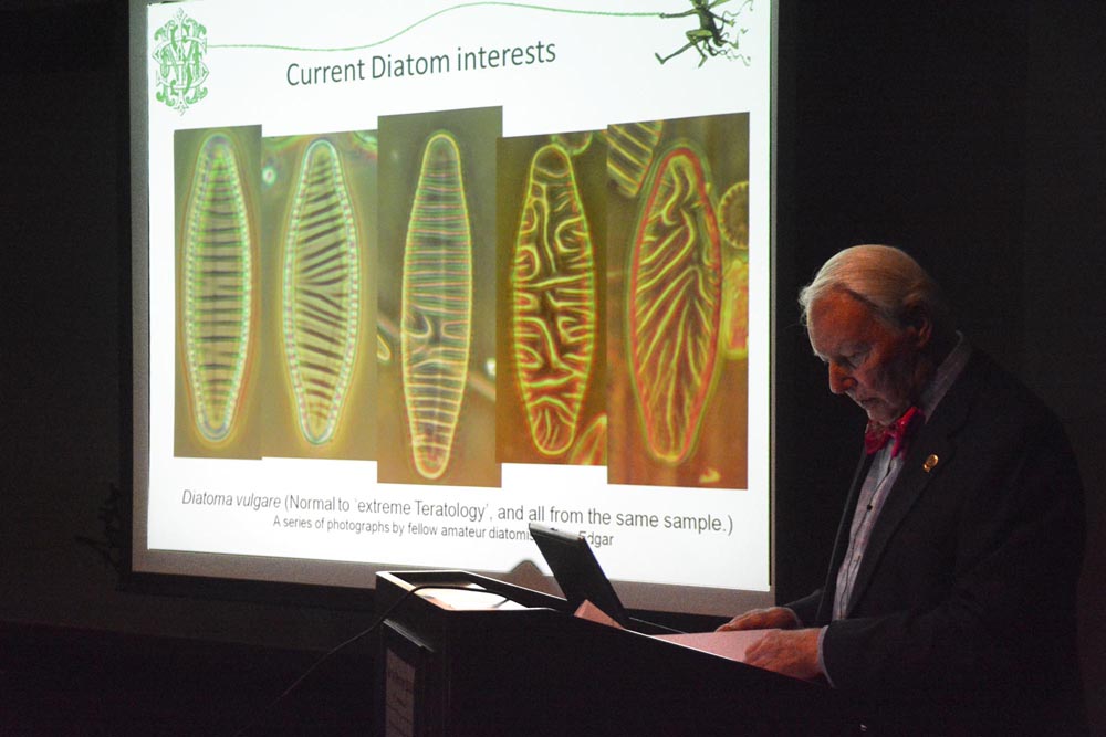 In March of this year one of the editors was selected by the awards committee of the State Microscopical Society of Illinois as recipient of the August Köhler Award.This was awarded for contributions in the field of diatoms.The award ceremony took place in June at Mercat Restaurant, Chicago, Illinois, U.S.A. There to receive the award on Steve Gill's behalf was John Gustav Delly who has worked closely with Steve on a number of projects."This honour," Steve says "is actually a tribute to all those contributors , editors and colleagues who have done so much to further the study amongst the amateur microscopists."