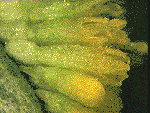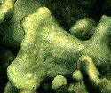 The lichen shown right was found on a dead twig (species uncertain). Examine habitats such as tree bark, fallen branches, heaths, gravestones, rocky seashores - each habitat usually has distinctive species if you live in an unpolluted area. Lichens have assumed an important role in pollution monitoring because many species are intolerant to air pollution such as sulphur dioxide.