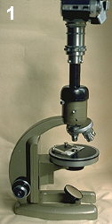 A much better arrangement than either of the foregoing is a microscope fitted with a separate camera tube, this has the advantage that the camera can remain in place while viewing through the bino. or monocular, (see fig.3).