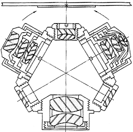 Cross section of rotating objective turret. 4X in vertical position, 10X on left, 40X on right.Objective specification (phase objectives have same NA):