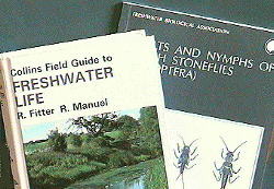 There a number of very useful books for the non-specialist describing stream dipping techniques, and simple keys to identify what you find. Two real gems are shown left, both published by the Field Studies Council.