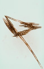 | Watching the movement of Bacillaria paradoxa is one of the most intriguing sightings you can experience when looking through the microscope. It is a small colony of pennate diatoms that moves like it is one of the latest technological inventions. The individual diatoms slide back and forth over one another so the shape of the colony can change from a square to an elongated pen. |