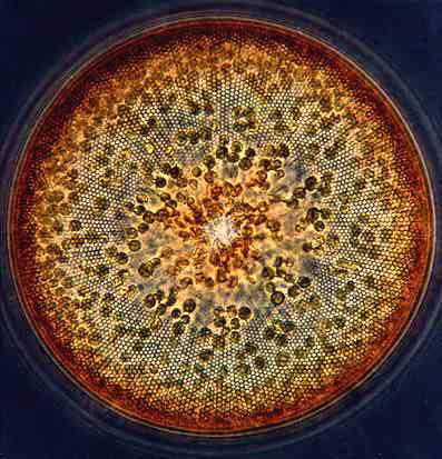 | Many amateur microscopists tend to clean their specimens with chemicals before observing them. This seems an odd thing when you realise that you miss half of the organism and see only it's coat. The shells of diatoms are indeed beautifully ornamented. But this can also been seen when the living tissue is still in it. The way the chloroplasts lie inside the shell is in fact very beautiful too. And watching Bacillaria and its relatives move is a fantastic sight. Forget the chemicals for a few hours and watch these marvels alive! |