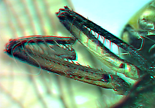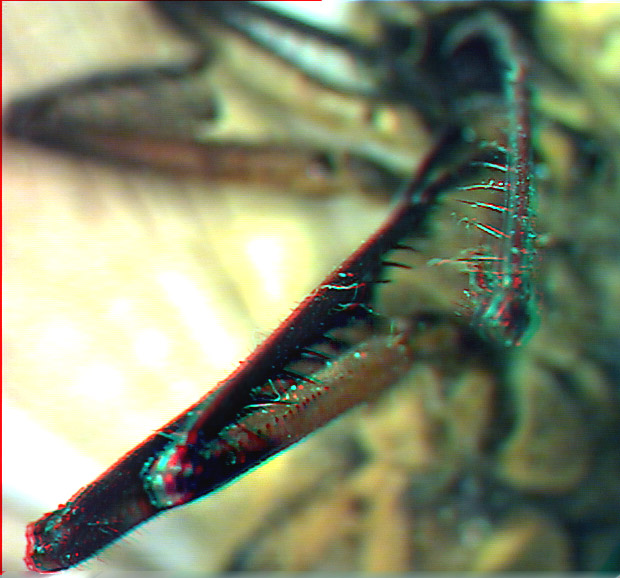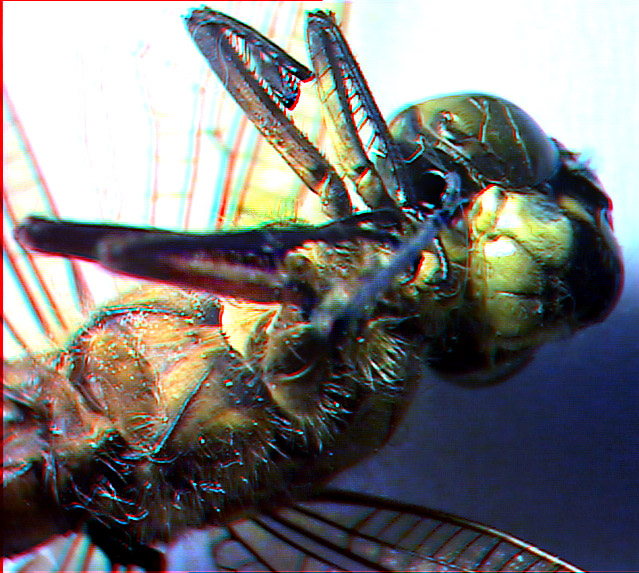 Dragonflies are opportunist feeders, preying on whatever they can find. They may often congregate in large numbers where food suddenly becomes abundant, for example - when ants swarm - and are able to catch their prey easily in flight. Their forwardly-directed front legs are populated with sideways-facing bristles comprising a very effective insect trap. Prey may be consumed during flight or after settling. Dragonflies will often discard the wings of larger insects and consume the remaining parts. |