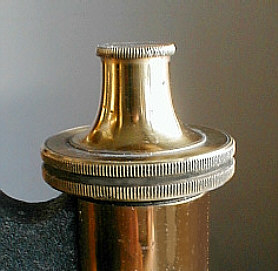 The top and lower knurled extremities of the fine control offer different 'feels' to the microscopist. The upper part, being quite narrow can be spun around rapidly, and with the help of the 'flywheel effect' at the lower end can traverse the whole range of fine focus in two or three seconds if need be, and is especially useful when observing thick specimens, passing through the multiple planes of focus very rapidly, which is not possible with modern mechanisms. This particular feature was a great advantage when observing living specimens in water as the creature could be 'followed' in the vertical plane with consumate ease, and I dearly miss that convenience. The wider lower rim offers more critical adjustment for the higher powers. It is simple, utterly reliable and very sensitive too.