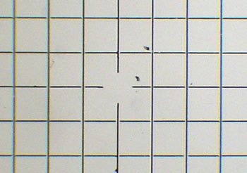 A 0.2 mm square grid reticle imaged using a Russian 3.5x planachromatic objective. Full area image capture (resized from 800x600 master).![]()