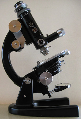 1953 John H. Bassett introduces the 'Model P' polarizing microscope with variants the 'Model S' [biological] and 'Model M' [metallurgical] all based on a common stand, the 'Model S' faces stiff competition but the 'Model P' does well.