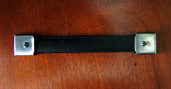 The outer section of the original handle was beyond repair but on the suggestion of my brother I cut a piece from an old well worn leather belt fed the steel reinforcer through the centre of the stitched leather and produced a handle hopefully in keeping with the box.
