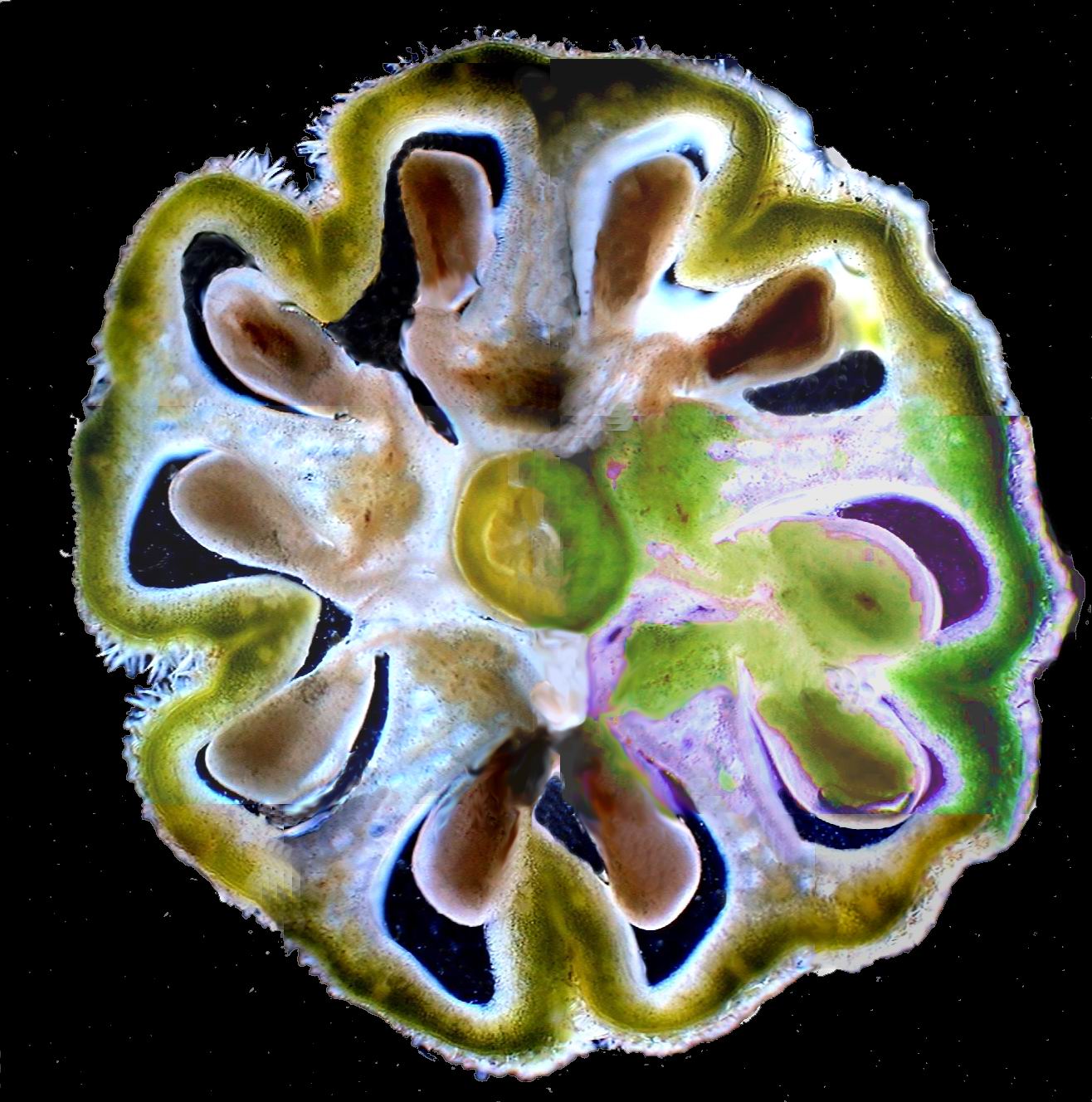 sections. A word of warning: the Euphorbiacea and many other plants can have lacticiferous channels full of latex that flows out like milk over the cut surface. Cutting under water and removing after some seconds the just made section, generally washes out the latex.