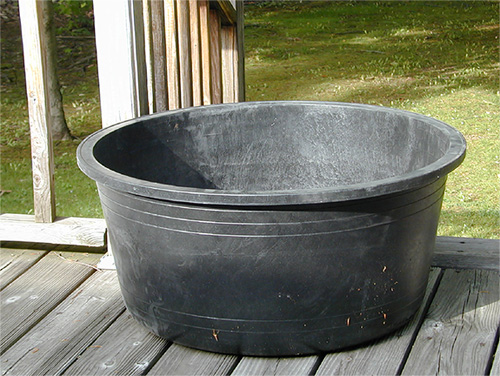 I realized I had created yet another problem - I like to think ahead and even though it was June at this point, I was anticipating the advent of winter and the inevitable impact freezing solid would have on the goldfish/feeder fish. Temperatures here can get to well below 0° F (-18°C) for weeks at a time, and having experienced the aftermath of failure of a heater in a hot tub in mid-winter, I know we had the real possibility of a 25 gallon (95 liter) block of ice. Now protozoa and probably even metazoa can survive being frozen solid; goldfish cannot. As well, part of the project design was availability of critters year round, and having to hack a hole through whatever layer of ice didn't seem to fit the initial concept.