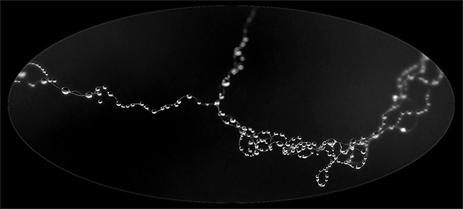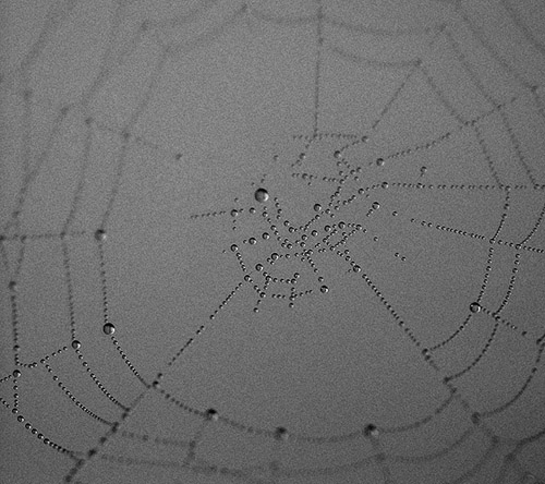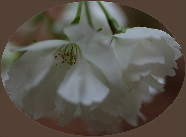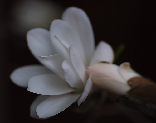 A droplet hanging by an invisible gossamer thread with the opening bud of blackthorn.