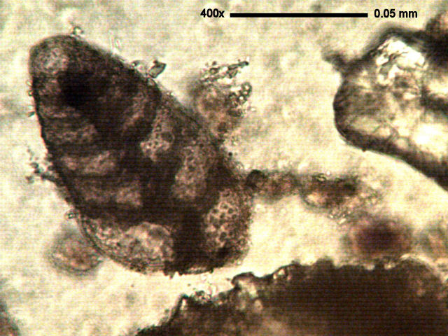 Unknown 1, pictured above, was a very exciting and puzzling find. The narrow depth of field of this picture hides four additional bullet shaped spines jutting out toward the viewer at an angle of approximately 30 degrees and I suspect that there are others on the reverse side. What could this defensive object be or be a part of? Did I find and observe a complete form or were additional spines missing? Finding and observing is great fun but attempting to identifying these microfossils is a real challenge for this novice.