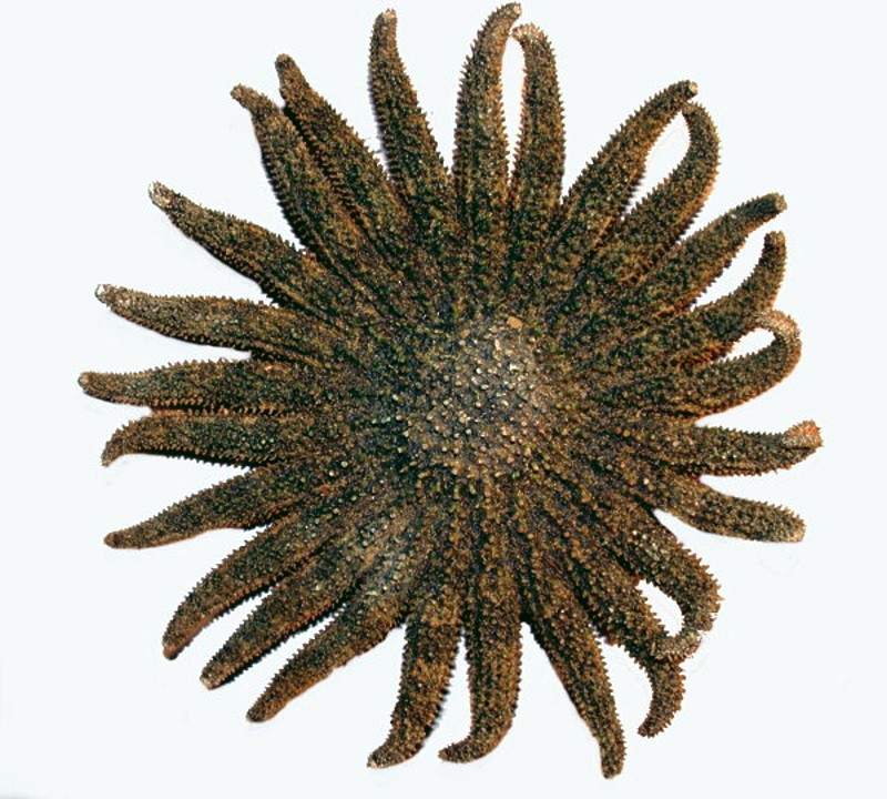 Just under the brittle star in the bowl is a Heliaster or “sun star”. This specimen has 25 arms.