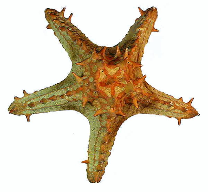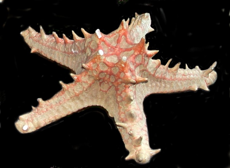 One of the more striking specimens is the starfish with the red spines. This is Protoreaster linckii.