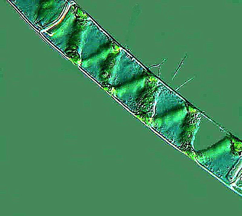 In the previous gallery, we looked at some diatoms, those wonderful marvels constructed of silica; that is, they’re mostly glass. Sometimes they aggregate in unpredictable ways as is the case with these very small “square” diatoms.