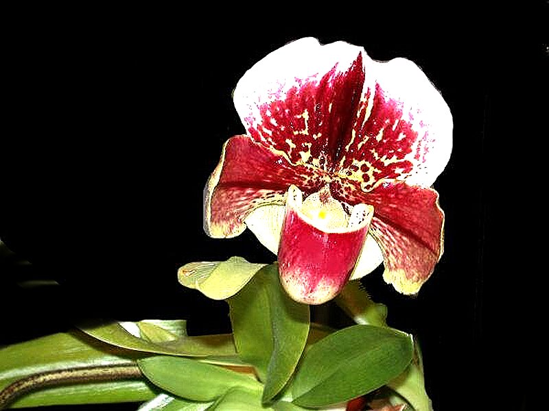 Here’s a photo which I took of a Lady Slipper orchid which I managed to maintain for several years. The first year, it only had one flower, the next there were 3 and then thereafter 5. It was a wondrous plant. This is a closeup of a single bloom.