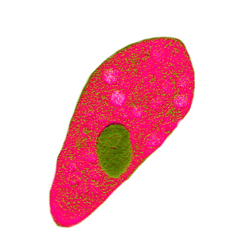 Now, a selection of protozoa, beginning with one of the most familiar, Paramecium. The first image is one stained with a Trichrome stain which clearly demonstrates the macronucleus.