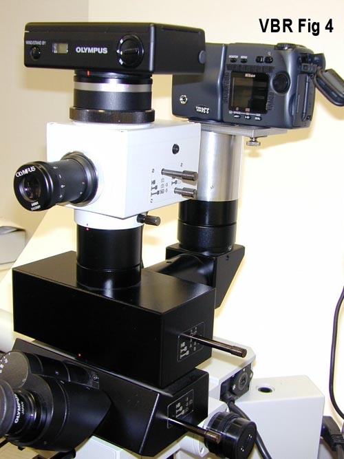 Fig 4. Nikon CP990 mounted on Olympus BX-50 series microscope. Film based system (foreground) used for more critical photography!![]()