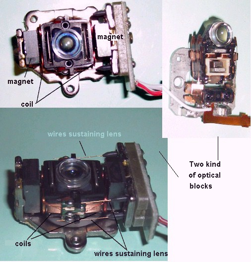 You may have already understood that the lens will be the objective in our microscope. First, you must identify the terminals which are used to displace the up/down coil, which is the 'focusing' coil. In fact the coil acts like a loudspeaker coil... |