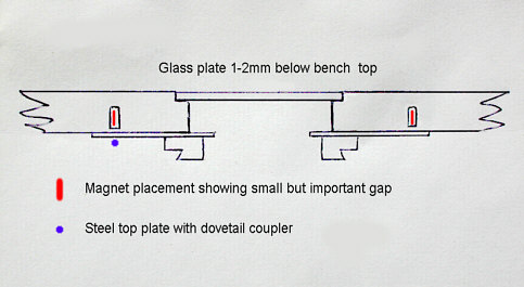 I also advise anyone to fit a thickish glass plate so that it's upper surface is about 1mm below that of the bench's. Its presence will be appreciated for a number of obvious reasons not least of which might be the spilling of water onto the bench?