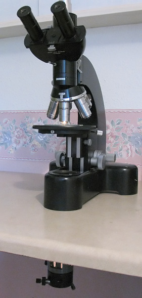 Many of the older stands with fixed horizontal stages in the 1940's and 1950's had small illuminators added which emitted diffuse lighting and therefore replacing the substage mirror. These units were adequate for low powers but not for high power work. My particular reasons for an interest in an underside illuminator were to provide a Köhler/Critical vertical light source which some of the older stands lack, because there is no room under the substage, and to rid the work surface of any wiring. If anyone is in possession of a stand of the fixed horizontal stage type, or simply requires a universal illuminator for all seasons and purposes then the following notes might be of interest.