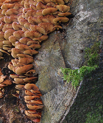 Jagger Green valley has pleasant walks following either the stream with steep grassy slopes and trees or alternately along a winding path that will eventually bring you to Holywell Green. Both have their charm but my favourite route is along the valley bottom. This valley in itself has further footpaths connecting to it giving good views across the top of the trees but note you should stick to the marked routes and not wander around too much as it is private land with public access. If you look carefully in the more open areas which catch the sun several types of tiny flowers can be seen amongst the grass whilst at most times of the year different fungi pop up on the felled trees and branches and amongst mosses and decaying vegetation. At one point there is a bench next to the stream a fine place to take a sandwich and flask of coffee and listen to the sound of the flowing water loosing yourself to the moment.
