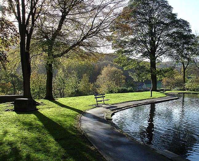 A small park with duck pond and play area is situated in the valley bottom it is quite easy to overlook it, with its surrounding trees, benches and nice views to the distance it is a good place to sit down and enjoy some tranquility. Of note here is on still days the whole area becomes a venue for song birds which at certain times of day sit in the trees and sing the most beautiful melodies one of the best of which are the thrushes with a wide and varied sounds. It has a natural ambience and the calls reverberate around.. excellent!