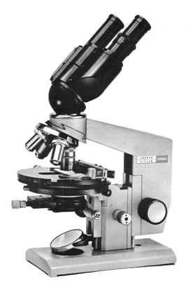 The R21 was the variant with disc focussing and modern coarse focus knob.The binocular variant with AY-12 head, objectives as R11. Paired 7x and 10x eyepieces supplied.