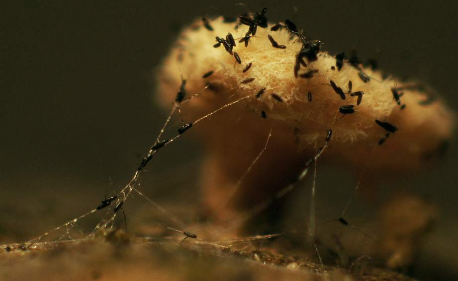 (x70) Image of wood fungus invasion by strange parasites. (Olympus Obj. 40mm @f3.4) |