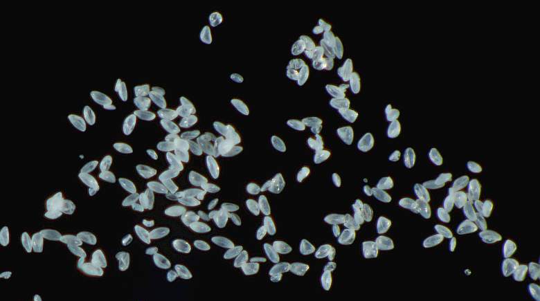 (x100) Pollen grains attached to super fine filament (Olympus 40mm @ f 3.4) |