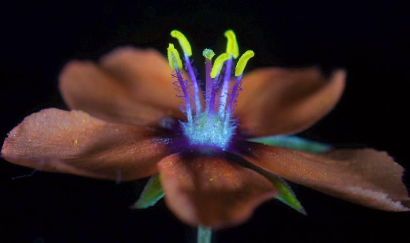 | (x20) Scarlet Pimpernel's reproductive parts highlighted by oblique LED lights. (Zenith 58mm/converter) |