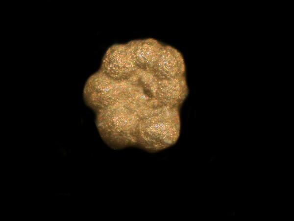 4) For revealing surface detail of small shells and organisms. I have placed forams and other micro-fossils in a 1% solution of silver nitrate, added several drops of a dilute solution of ascorbic acid (Vitamin C) to precipitate and deposit the silver, rinsed in distilled water and then allowed the specimens to dry thoroughly before mounting dry on paleo slides. Here is an example of a foram treated using the described procedure.
