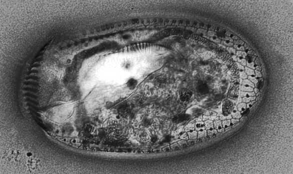 2) In medium-sized hypotrichs, there was extensive distortion, however, the nuclei were sharply stained and, in some instances, the cirri were clearly evident.