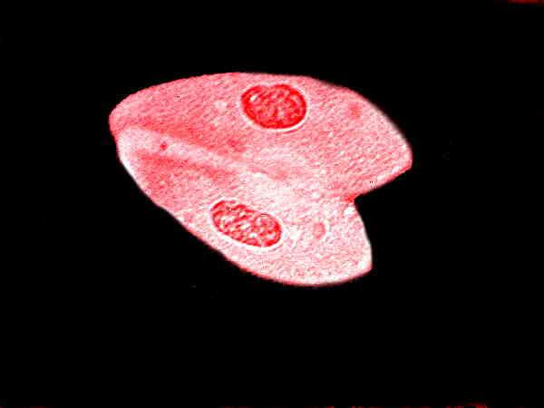 3) Acid Fuchsin–In dried specimens of Paramecia around the edge of the drop, some staining of the pellicle occurred.