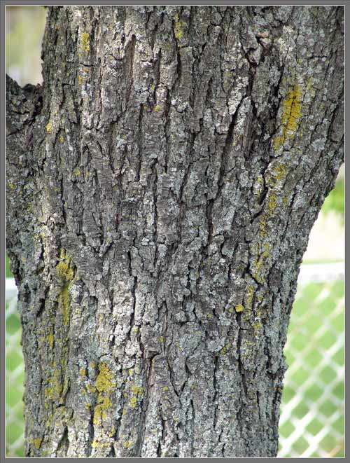 The bark is grayish-brown in colour, and is scaly. Lighter
