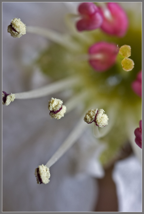 Closer views of pollen releasing anthers reveals that they possess