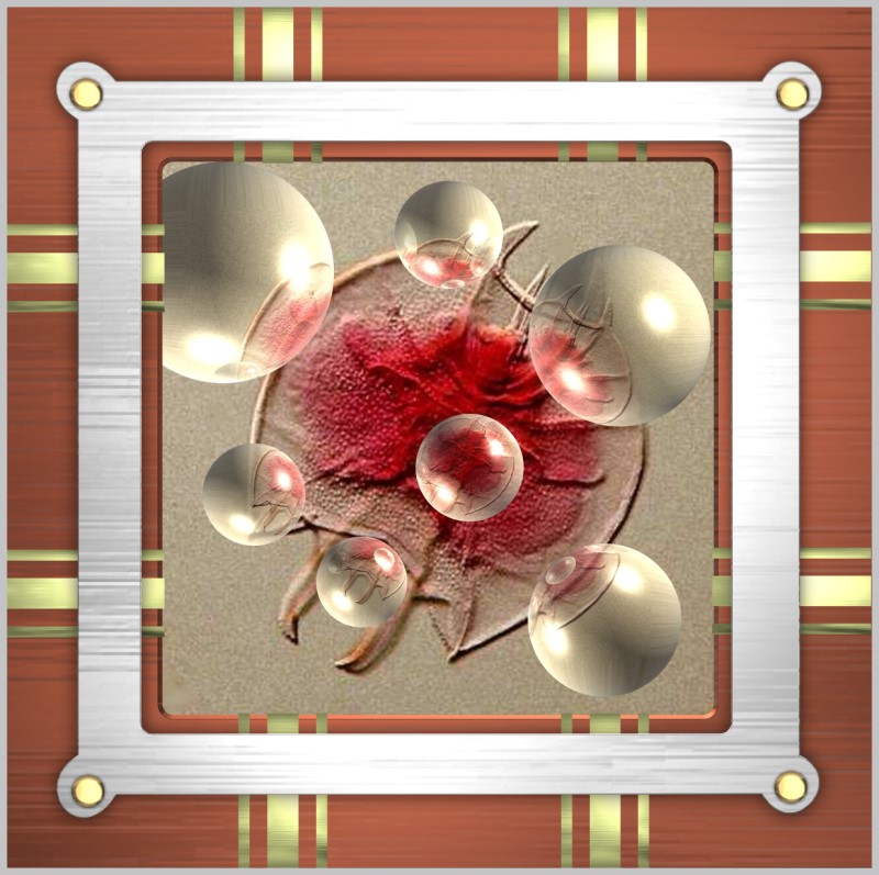 Having never properly grown up into a serious, responsible adulthood, I still love to play and recently I have been playing with additional features of the imaging software program PhotoImpact. I confess immediately that in this set of images my primary concern was aesthetic and not scientific. I got interested in transforming some images and then trying to present them in an interesting and provocative way. I am here concerned with the interaction of the frames and the images. In addition, I was trying out some eccentric, and I hope, interesting, modifications of images by “fusing” 2 or more images and using images as a basis for pattern creation in order to explore the potential of the software (and, of course, to play). Powerful technologies, such as computer graphics software, invite us to play and be whimsical and that’s as it should be.