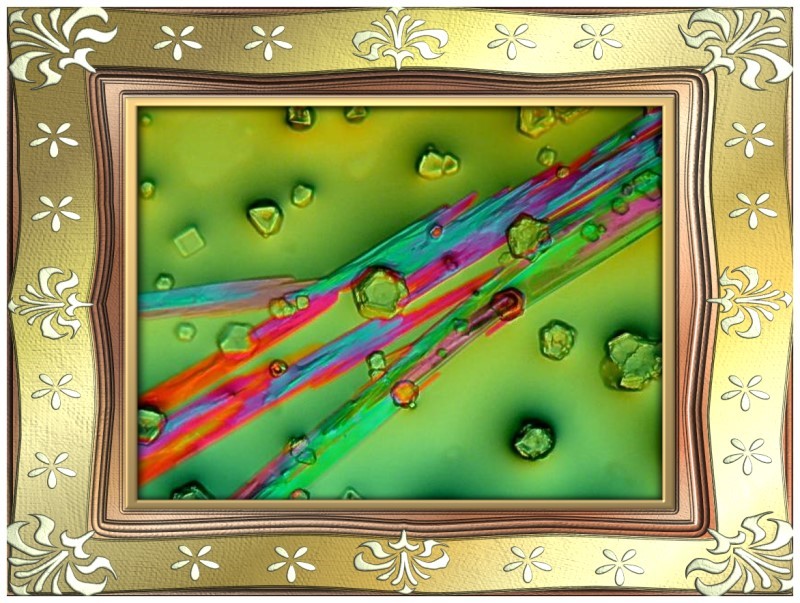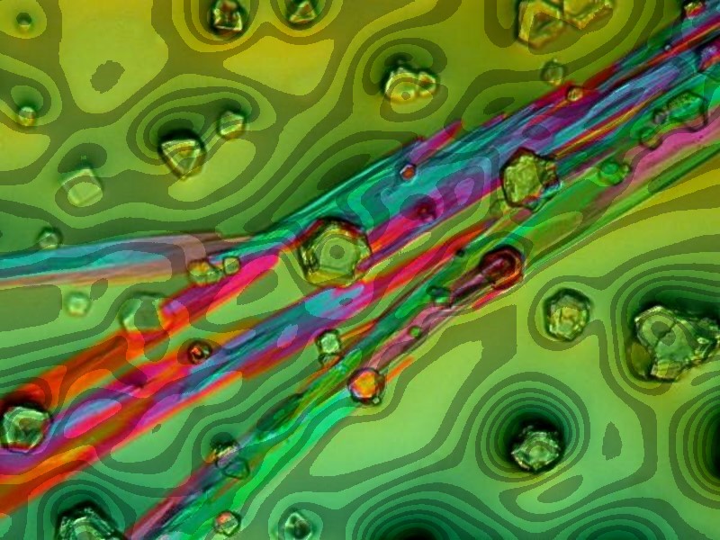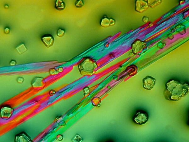 Next, let’s play with some crystals. This image is a mixture of generic Alka-Seltzer mixed with some powdered plant food and photographed under polarized light.