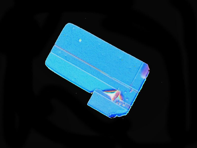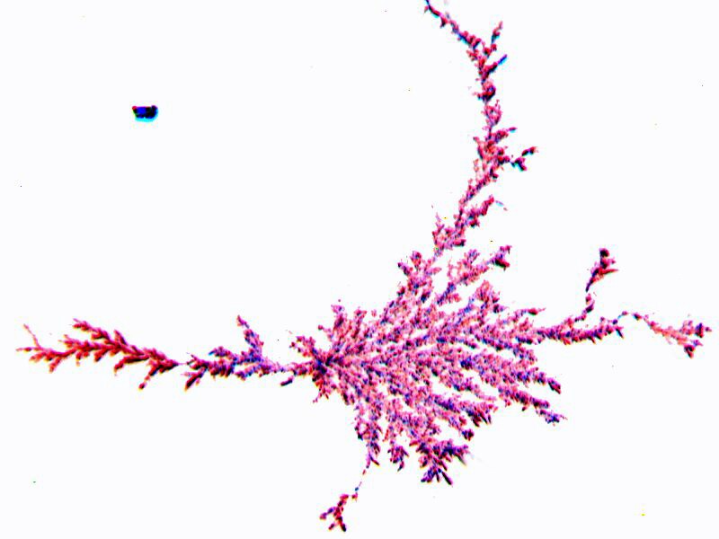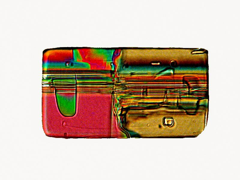 However, not all the MC (Magnesium chloride, in case you’ve forgotten) images are so geometrically”simple” nor are their color patterns and shifts always easily describable. Consider the following image and its inverse.