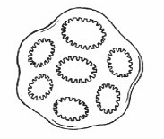 | The photo's were put away and forgotten until recently when in the Micscape paper version I saw a drawing by Wim van Egmond (shown right) that looks like a Holothurian plate so I looked out the photomicrographs to compare with Wim's drawing. I am still not sure about Wim's plate as he gives no indication of the size of the object. | ![]() |