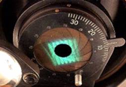on the condenser iris (left). When looking in the tube
