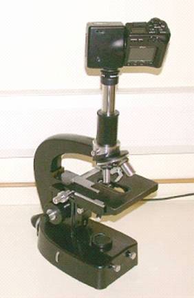 The microscope in use with a Coolpix camera via the