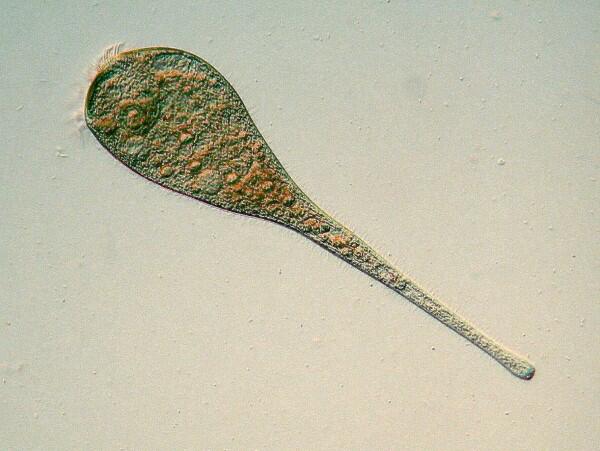 7. Dileptus anser. This bizarre ciliate waves its “trunk” rather like an elephant and at the base of the trunk is the cytostome which has a grouping of toxicysts which it can discharge to stun potential prey.