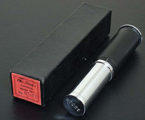The slide rules illustrated so far are linear with typical 25 cm (or 10 inch) scales. For greater precision, models with linear scales of 50 cm or more were available but they can start to become impractical. Wrapping the scales spirally around a cylinder was adopted by some makers and I own one very common example, the 'Otis King Calculator', a British model whose production spanned from ca. 1923-1972 (shown