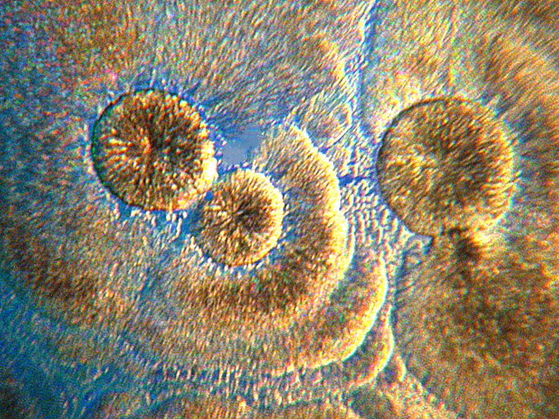Now, this is a lead up to explaining to you why I am going to show you a bunch of crystal images which I cannot identify in terms of their composition. I ask you think of it as a gallery which you are wandering through and you walk up to look at the little card beside the painting giving the name of the artist and the title of the painting and you discover the title “Untitled” and this occurs over and over. However, occasionally, you may find one with a whimsical title which in my case will be a result of my hyper-paredolia. However, you might interject and inquire whether or not I kept a written record of the chemical composition of my crystal creations. Well, yes, I did. However, when we moved to a smaller, one level house, many items got misplaced or lost, among them a number of my notebooks. So, much as I would like to be able to tell you the specifics and, indeed to know them myself, I could only guess and I don’t want to mislead you so, you will have to settle for my “Untitleds” and “Whimsicals”. I can’t simply discard all these images, because some of them I quite like and so I am sharing some with you.