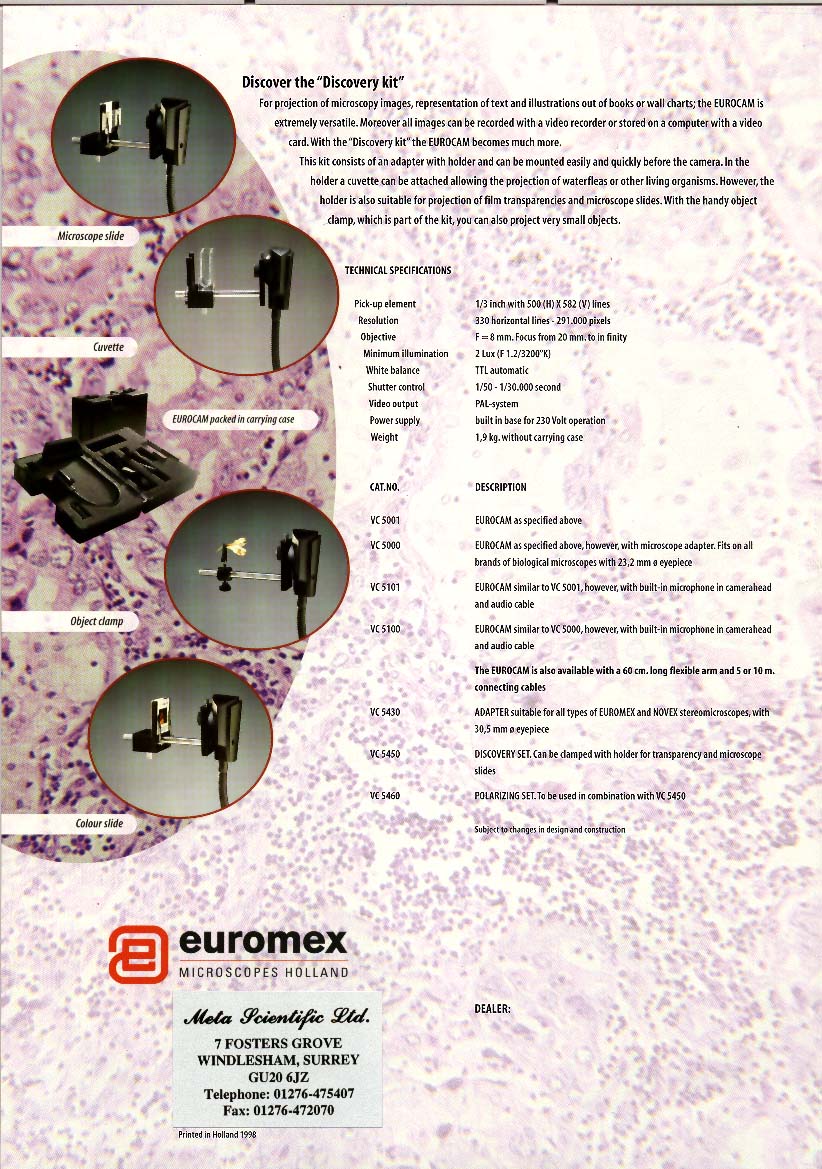 Page and images copyright Micscape Magazine 1998 Page 3 & 4 Specification Images (c) Euromex Microscopes Holland (used by permission from Meta Scientific UK All rights reserved.