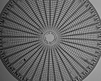 this is part of his slide of five nicely arranged diatoms.