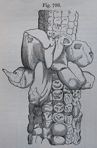 Fig 788. Portion of a spike of Maize infested with Ustilago maidis.